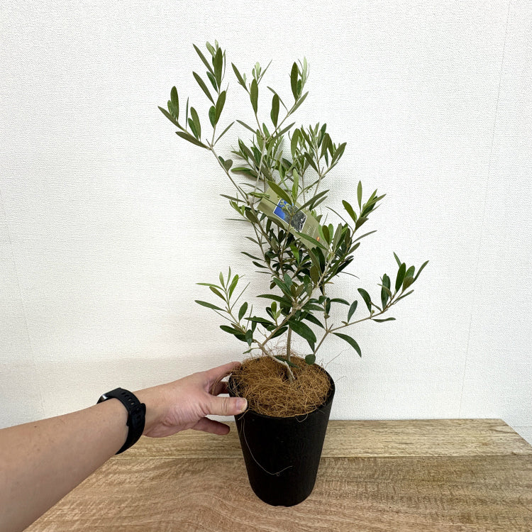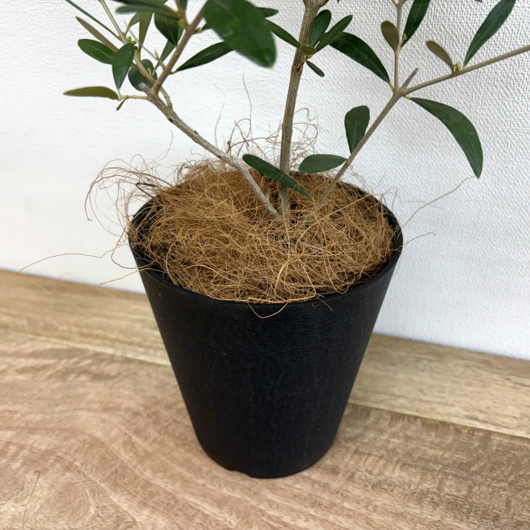 こちらのオリーブは15cmのロングポット。玄関やオフィスのエントランスにちょうど良いサイズ感です。植え込みに対応する植木鉢は6~7号くらいが目安です。