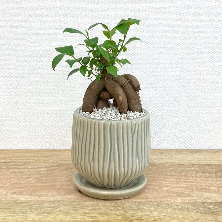 ガジュマル Mサイズ と植木鉢 MM063-130(グレー) の組み合わせです。マルチング材は軽石小粒になります。