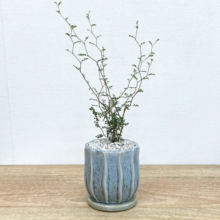 ソフォラ リトルベイビー と植木鉢 MM039-115(ブルー) の組み合わせです。マルチング材は軽石小粒になります。