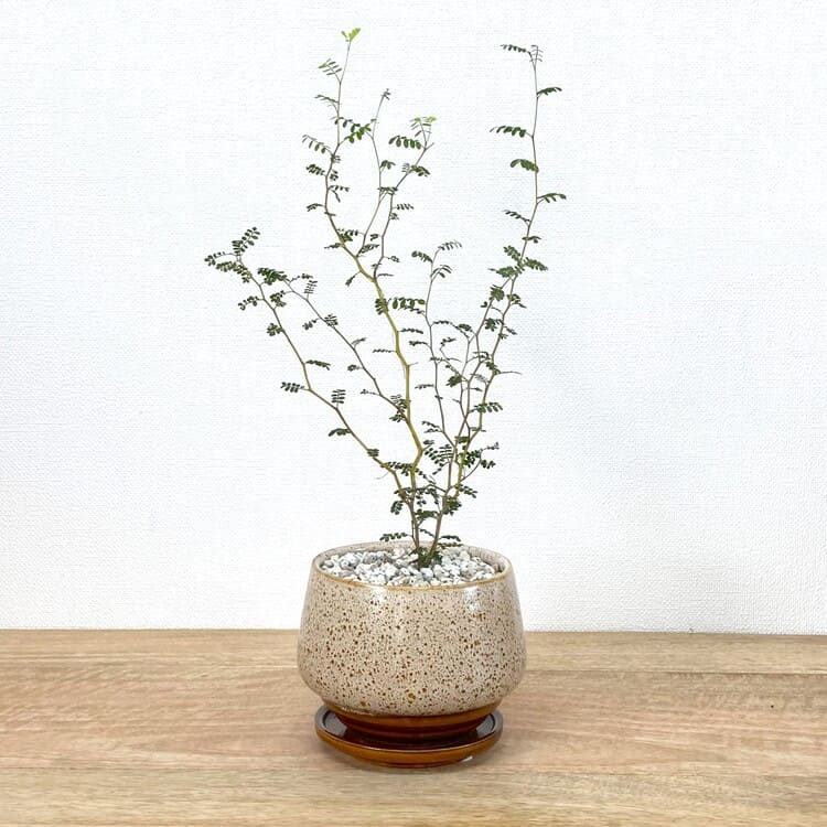 ソフォラ リトルベイビー と植木鉢 MM040-120 の組み合わせです。マルチング材は軽石小粒になります。