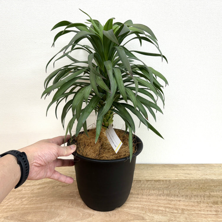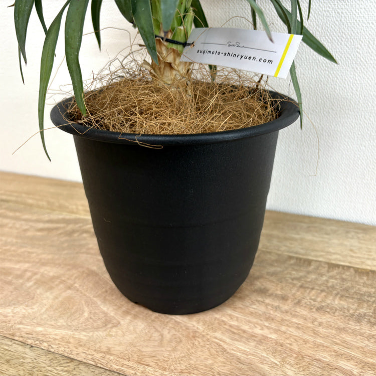 苗のサイズは18cm6号ポットになります。組み合わせる植木鉢は6号~7号くらいが目安です。背が高く十分な存在感がありがらも、幅はコンパクトで室内でも邪魔になりにくいサイズです。