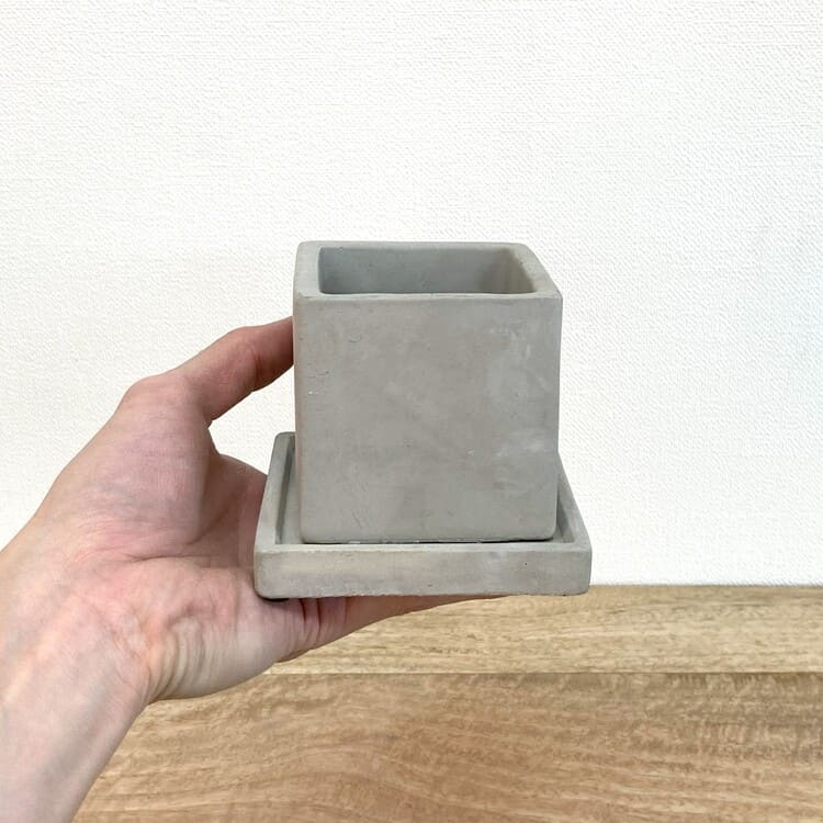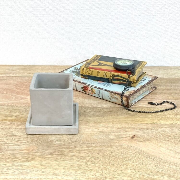 シンプルな形状とコンクリート感がスタイリッシュなキューブタイプです。使い込むうちにゆっくり見た目が変化するでしょう。”打ちっぱなしの壁”のような雰囲気と風化をじっくり楽しめます。
