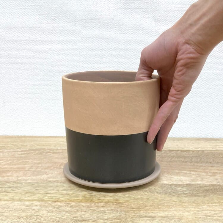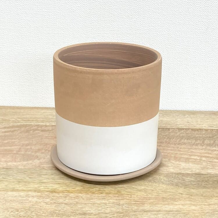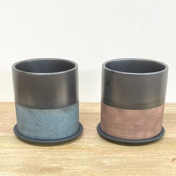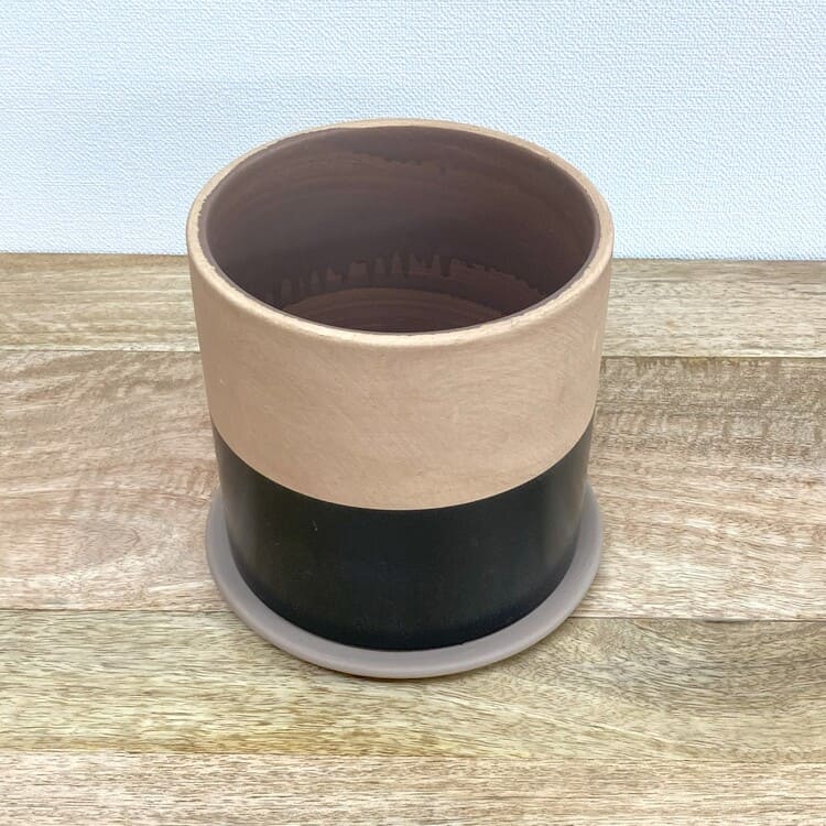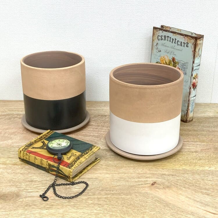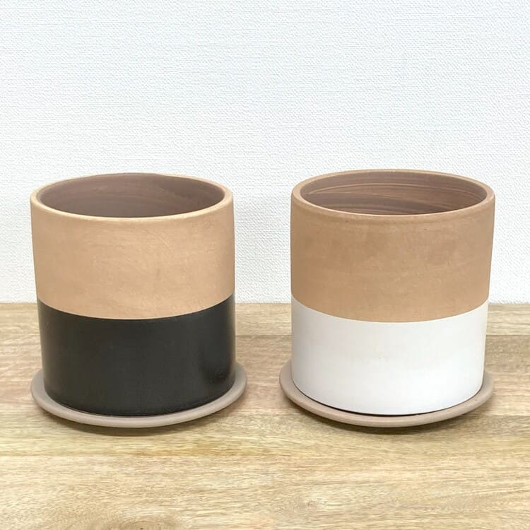 高温でカッチリ焼かれた素焼き地の植木鉢。きめの細かい土が使われており上品な仕上がりです。シンプルなツートンカラー、4色のバリエーションになります。