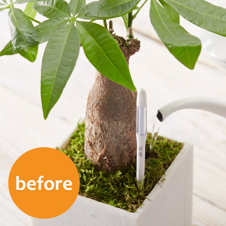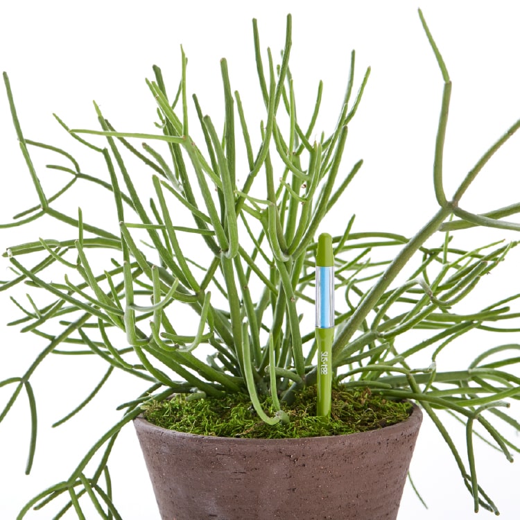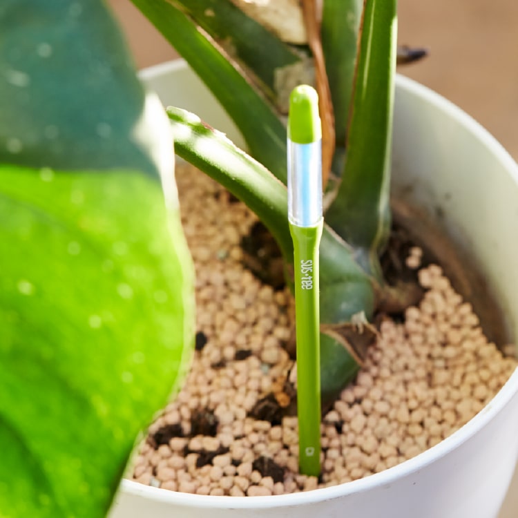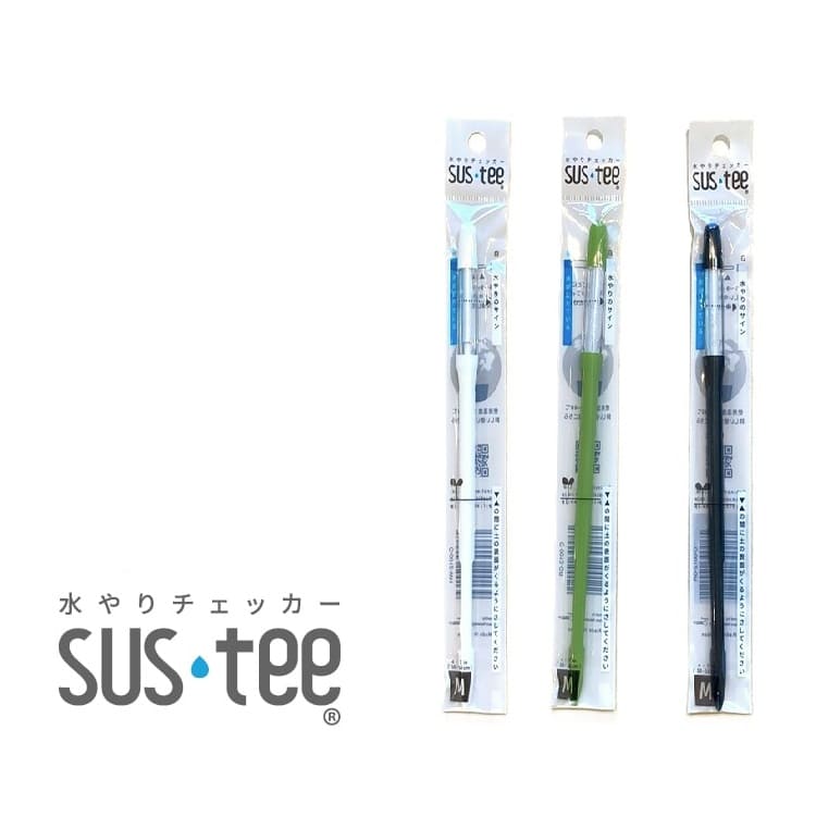 そんな水やりのタイミングを教えてくれるのが「サスティー」です。土に挿して水をやると数十分で白色から青色へ変化し、水がなくなると水色から白色に戻ります。