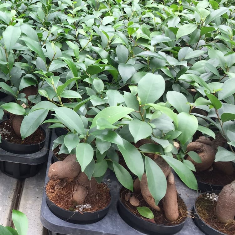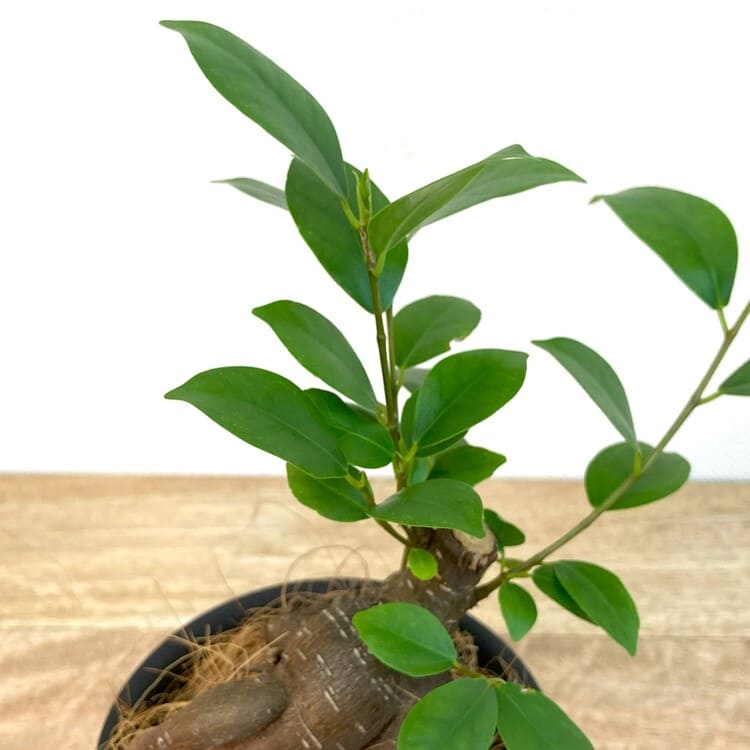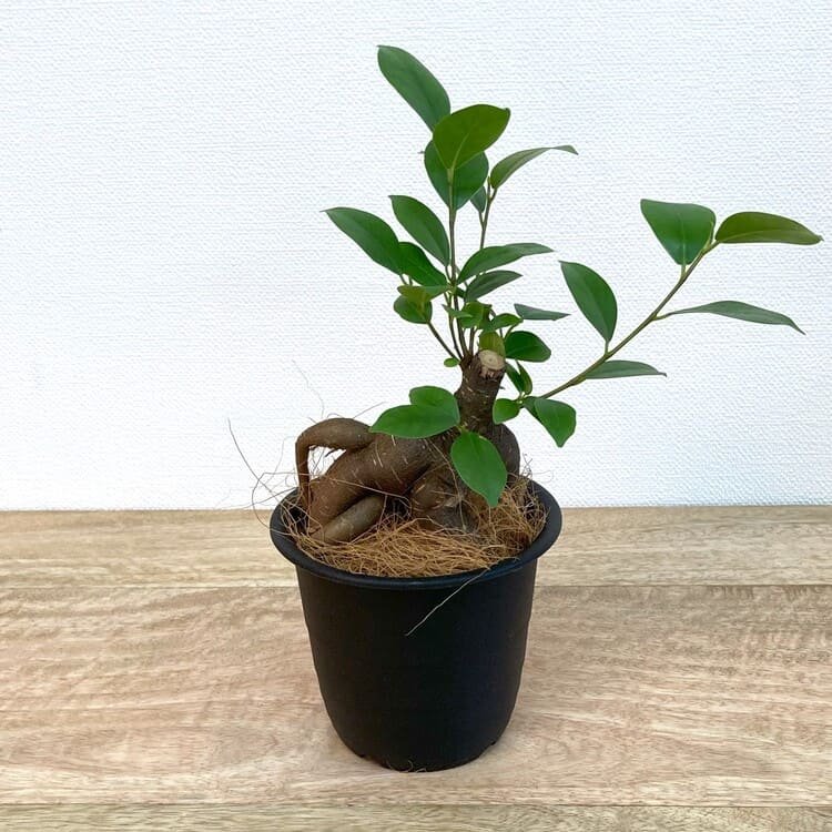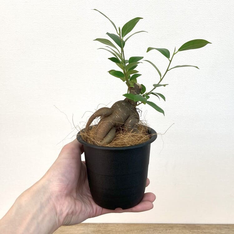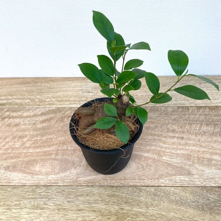 こちらのガジュマルは10cmポット苗です。身近に置くのにちょうど良いサイズで、植え込みに対応する植木鉢は4号くらいが目安です。