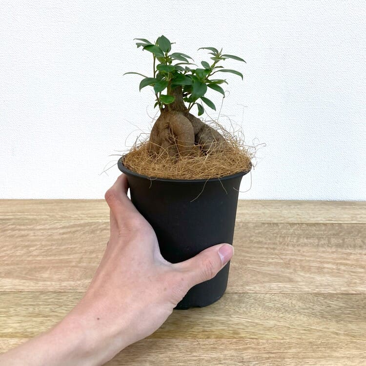 こちらのガジュマルは12cmポット4号の苗です。身近に置くのにちょうど良いサイズで、植え込みに対応する植木鉢は4~5号くらいが目安です。
