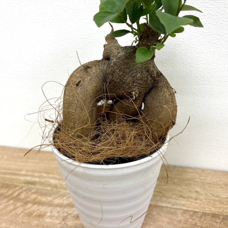 個性的な姿で人目を惹くガジュマル、膨らんだ姿の幹は見ごたえがありますね。 室内でも育てやすいこともあり、観葉植物界では定番の人気者です。