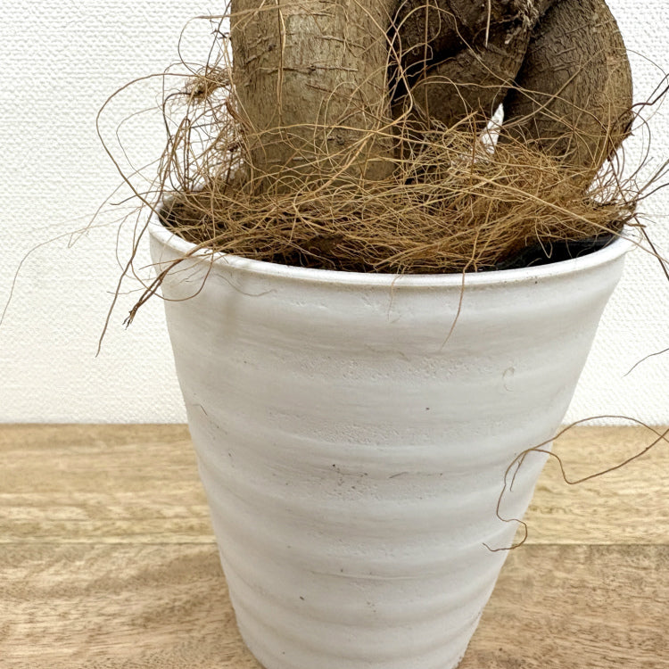 こちらのガジュマルは12cmポット4号の苗です。身近に置くのにちょうど良いサイズで、植え込みに対応する植木鉢は4~5号くらいが目安です。