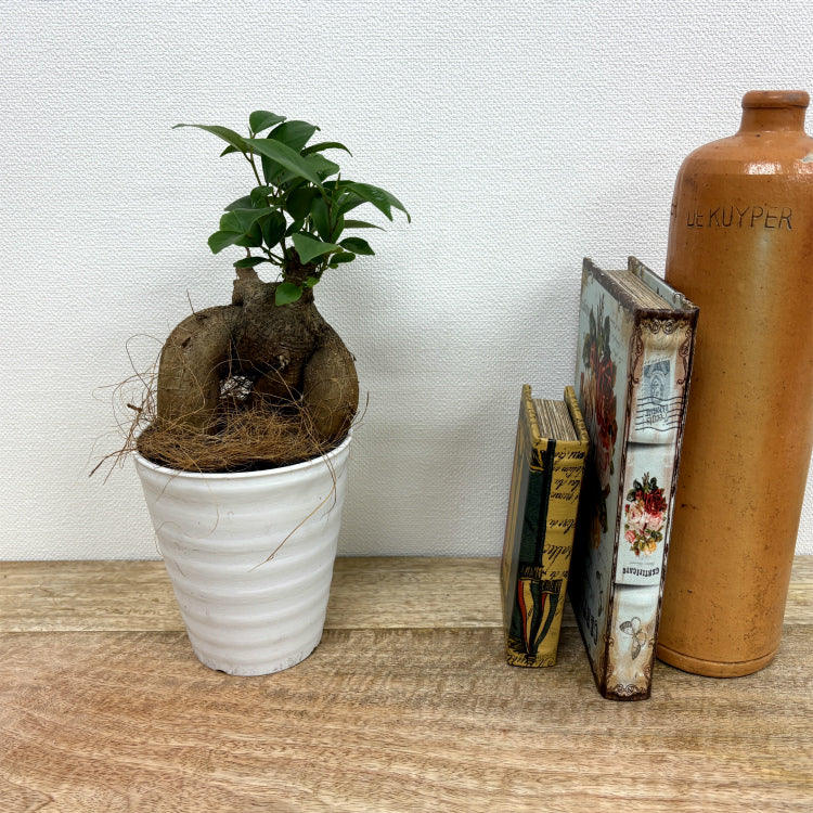 古くから精霊が宿る木として知られているガジュマル。太くなった気根や独特の樹形は大変魅力的です。 生命力を感じさせるその姿から「健康」という花言葉が添えられています。 それ故にか「幸せを呼ぶ木」「多幸の木」として知られる人気の観葉植物です。