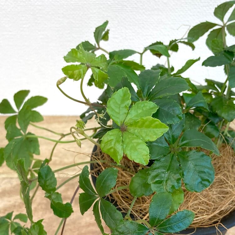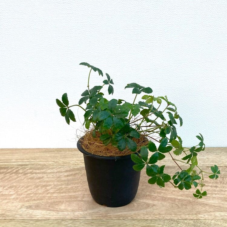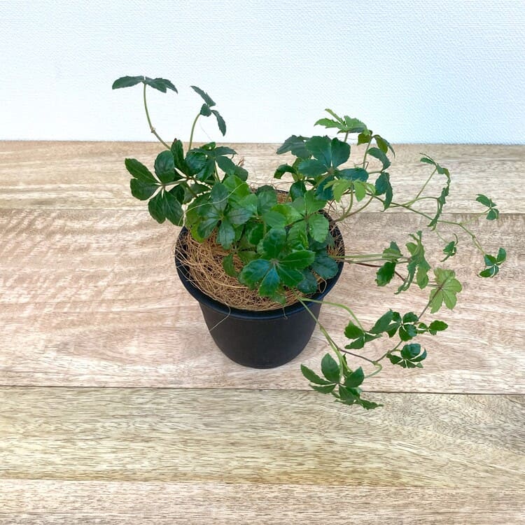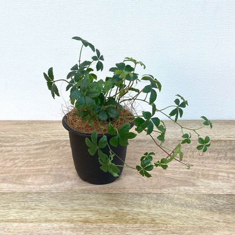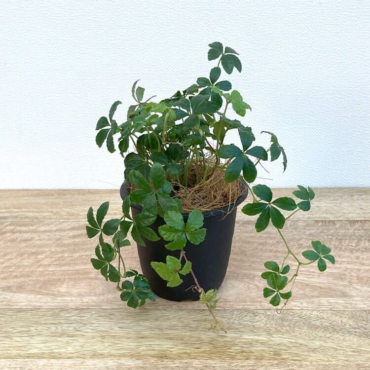 苗のサイズは9cm3号ポットです。組み合わせる植木鉢は3.5号~4号くらいを目安にしてください。5枚の葉を広げながらつるを伸ばして生長します。手軽に飾れるサイズながら、伸びたつるは見ごたえのあるボリュームにもなります。