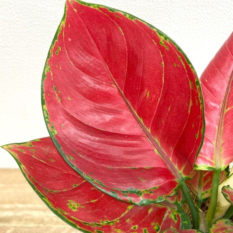 思わず「本物?」と疑いたくなっていまいそうな鮮やかな観葉植物「アグラオネマ・ビューティー」。真ん中に入る大きな斑が鮮やかな赤色でトロピカル感にあふれています。