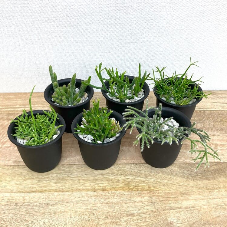 リプサリスの仲間は種類がとても多く、細い葉っぱ、産毛のあるもの、枝分かれの多いものなど見た目はさまざま。育て方に違いはないので飾るお部屋の雰囲気にぴったり合うものをお選びください。