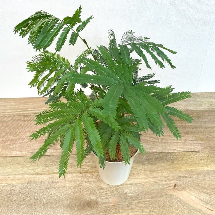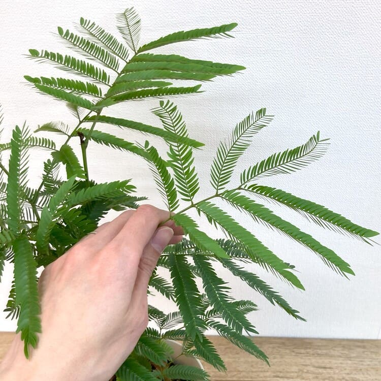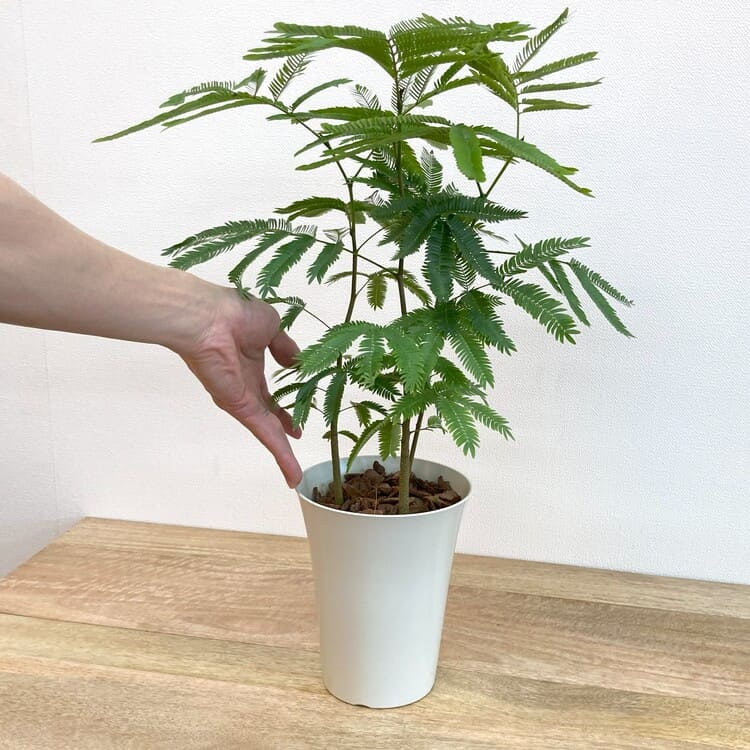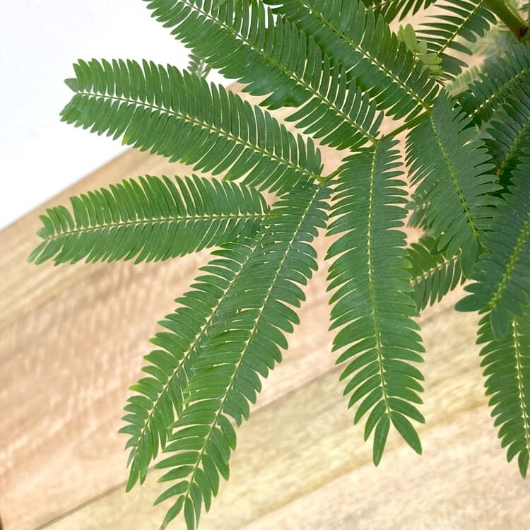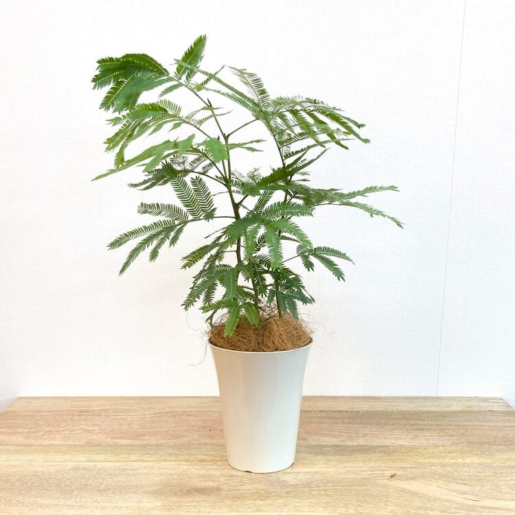 集まった小さな葉と細い枝でやさしい印象の観葉植物、エバーフレッシュ。光が透けるような心地よい空間を演出できるため、リラックス効果が期待できる近年人気のグリーンです。生育旺盛で生長期には新しい葉が増えていく様子を見ることができるのも楽しみの一つですね。